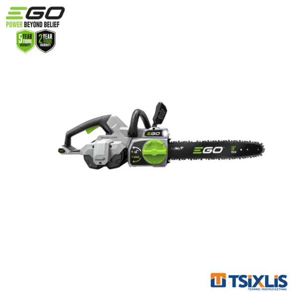 Το CS1800E της EGO Power+ διαθέτει την πρωτοπόρα στη βιομηχανία ταχύτητα αλυσίδας 20m/s, παρέχει όλη την ισχύ και τη ροπή που χρειάζεται για γρήγορη κοπή μεγάλων κλαδιών και μεγαλύτερων κορμών ως και 45cm (17.5 ίντσες) σε πλάτος. Εξοπλισμένο με σύστημα αυτόματου τεντώματος αλυσίδας, η φασαρία και η ανησυχία για το τέντωμα είναι περιττές. Το τέντωμα το αναλαμβάνει ένα σύστημα ελατηρίων το οποίο ενεργοποιείται με τη στροφή της λαβής 90 μοίρες. Διαθέτει επιπρόσθετα συστήματα ασφαλείας , όπως το φρένο αλυσίδας, σχεδιασμένο να σταματήσει το κλότσημα κατά τη διάρκεια της κοπής, σταματώντας τον κινητήρα σε κλάσματα δευτερολέπτου.