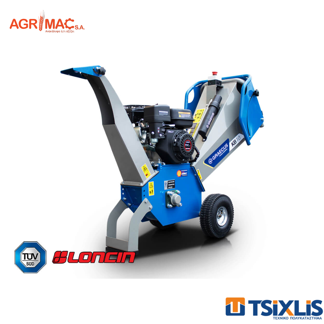 Βενζινοκίνητος Θρυμματιστής με 4-χρονο κινητήρα βενζίνης και εκκίνηση με χειρόμιζα. Ημιαυτόματη τροφοδοσία με την κλίση. Ο αντικραδασμικός συμπλέκτης ελαχιστοποιεί την άμεση κίνηση μεταξύ του κινητήρα και του τυμπάνου, διευκολύνοντας την κρύα εκκίνηση και προστατεύει τον στρόφαλο σε περίπτωση εμπλοκής του συστήματος κοπής. Αναδιπλούμενη χοάνη για την προστασία και την μείωση του απαιτούμενου χώρου κατά την αποθήκευση και την μεταφορά του μηχανήματος. Εργονομικός σχεδιασμος και εξαιρετική ευελιξία χάρη στις 2 ρόδες. Σύστημα κοπής τυμπάνου με 2 μαχαίρια διπλού προφίλ συν 1 σταθερό, υψηλής σκλήρυνσης για την ρύθμιση του πάχους κοπής. Μακράς διάρκειας ζωής ρουλεμάν. Μετάδοση κίνησης με ιμάντες Kevlar. Μπουτόν έκτακτης ανάγκης για την άμεση διακοπής λειτουργείας. Η απόσταση εκτόξευσης ρυθμίζεται από το πορτάκι στο πάνω μέρος του αγωγού. Πλήρως κατασκευασμένο από μέταλλα υψηλής αντοχής. Στιβαρή κατασκευή με χαμηλό κέντρο βάρους. Η θέση του κινητήρα διευκολύνουν τον καθαρισμό και τη συντήρηση του. Χειρισμός με σύστημα ασφάλειας. Ευρωπαϊκό πιστοποιητικό ασφαλείας CE.