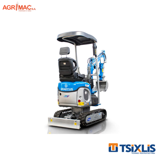 Έκσαφέας ερπυστριοφόρος Agrimac 1000kg Graecus EB10-XL. Με δυνατότητα περιστροφή μπούμας που βελτιώνει τη χρήση σε μικρά μέρη και κατά μήκος του τοίχου. Υδραυλικά πτυσσόμενες ελαστικές ερπύστριες 80 – 95 cm. Το πλάτος της λεπίδας ισοπέδωσης μπορεί να προσαρμοστεί εύκολα και γρήγορα με έναν πείρο ώστε να ταιριάζει με το πλάτος των πτυσσόμενων ερπυστριών. Μονοκύλινδρος πετρελαιοκινητήρας Koop KD192 10hp – 3000r/min, νέας γενιάς STAGE V με χαμηλότερη κατανάλωση. Με ισχυρή υδραυλική αντλία. Ανεξάρτητοι υδραυλικοί κινητήρες πορείας HENGLI. Ανθεκτικός κινητήρας περιστροφής ανωδομής 360°. Υψηλών προδιαγραφών υδραυλικό σύστημα βαλβιδών και χειριστηρίων. Γραμμή υδραυλικής παροχής στη μπούμα για μελλοντική σύνδεση σφύρας ή άλλων παρελκόμενων (γραμμή διπλής ενεργείας). Μπούμα με εγκατεστημένους υδραυλικούς σωλήνες στο κέντρο του πάνω μέρος της, προς αποφυγή ζημιών. Μοχλός ασφαλείας για το κλείδωμα των βασικών λειτουργιών του μηχανήματος. Πτυσσόμενη προστατευτική μπάρα στο εμπρός μέρος για εύκολη μεταφορά με βαν/ φορτηγά και την είσοδο του σε εσωτερικούς χώρους. Χυτό αντίβαρο στο πίσω μέρος, βελτιώνει σημαντικά τη σταθερότητα του εκσκαφέα. Το κάθετα ανοιγόμενο καπάκι εκθέτει το μεγαλύτερο μέρος του κινητήρα παρέχοντας ευκολότερη πρόσβαση στα εξαρτήματα. Στον στάνταρτ εξοπλισμό περιλαμβάνεται ηλεκτρική εκκίνηση με μίζα 12V, ωρόμετρο και αποσπώμενο σκέπαστρο. Δυνατότητα προσαρμογής όλων των δομικών αξεσουάρ και μηχανημάτων. Εύκολο στην χρήση με διεθνή πρότυπου χειριστήρια ISO. Προβολέας εργασίας LED στην μπούμα. Δύναμη εκσκαφής στον κουβά 1000kg. Περιλαμβάνει κουβά εκσκαφής 400mm. Διαπερνά από πόρτα( 80εκ). Δεξαμενή καυσίμου 11L. Με Ευρωπαϊκό πιστοποιητικό ασφαλείας CE.