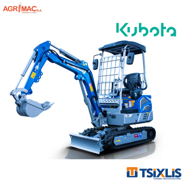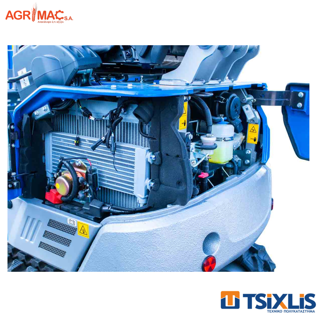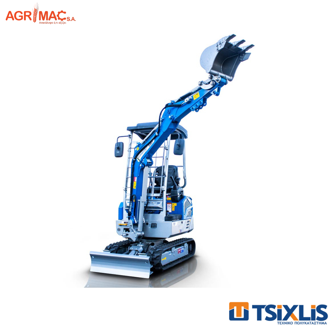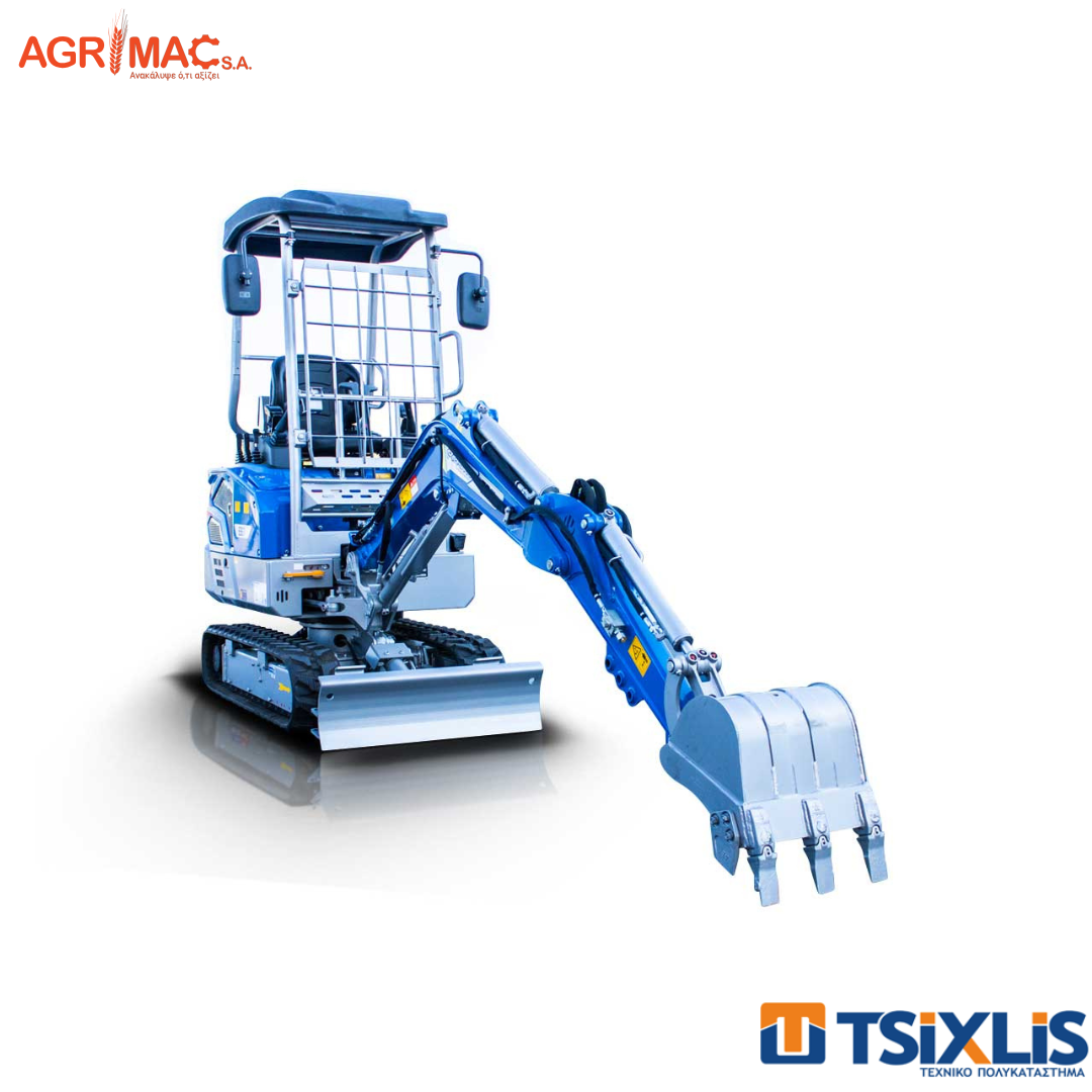 Εκσκαφέας ερπυστριοφόρος Agrimac 2.1T Graecus EB21-PRO. Με δυνατότητα περιστροφής μπούμας που βελτιώνει τη χρήση σε μικρά μέρη και κατά μήκος του τοίχου. Υδραυλικά πτυσσόμενες ελαστικές ερπύστριες 99 – 125cm. Το πλάτος της λεπίδας ισοπέδωσης μπορεί να προσαρμοστεί εύκολα και γρήγορα με έναν πείρο ώστε να ταιριάζει με το πλάτος των πτυσσόμενων ερπυστριών. Οι πλαϊνοί μοχλοί ελέγχου βελτιώνουν την ταχύτητα και μειώνουν την κόπωση κατά την εργασία. Τρικύλινδρος πετρελαιοκινητήρας KUBOTA D1105 19hp – 2200r/min, νέας γενιάς STAGE V με χαμηλότερη κατανάλωση. Ισχυρή υδραυλική αντλία. Ανεξάρτητοι υδραυλικοί κινητήρες πορείας με υδραυλικό κλείδωμα. Ανθεκτικός κινητήρας περιστροφής ανωδομής 360° με υδραυλικό κλείδωμα. Ψυγείο υδραυλικού λαδιού για την βέλτιστη χρήση υδραυλικών παρελκομένων. Υψηλών προδιαγραφών υδραυλικό σύστημα βαλβιδών και χειριστηρίων. Γραμμή υδραυλικής παροχής στη μπούμα για μελλοντική σύνδεση σφύρας ή άλλων παρελκόμενων (γραμμή διπλής ενεργείας). Μπούμα με εγκατεστημένους υδραυλικούς σωλήνες στο κέντρο του πάνω μέρος της, προς αποφυγή ζημιών. Μοχλός ασφαλείας για το κλείδωμα των βασικών λειτουργιών του μηχανήματος. Προστατευτική μπάρα με σκέπαστρο και 360° ορατότητα. Χυτό αντίβαρο στο πίσω μέρος, βελτιώνει σημαντικά τη σταθερότητα του εκσκαφέα. Πίσω ανοιγόμενο καπάκι για εύκολη πρόσβαση κατά την συντήρηση. Στον στάνταρτ εξοπλισμό περιλαμβάνεται ηλεκτρική εκκίνηση με μίζα 12V και ωρόμετρο. Δυνατότητα προσαρμογής όλων των δομικών αξεσουάρ και μηχανημάτων. Εύκολο στην χρήση με διεθνή πρότυπου χειριστήρια ISO. Προβολέας εργασίας LED στην μπούμα. Δύναμη εκσκαφής στον κουβά 1400kg. Περιλαμβάνει κουβά εκσκαφής 400mm. Διαπερνά από πόρτα( 102,5εκ). Δεξαμενή καυσίμου 19L. Ευρωπαϊκό πιστοποιητικό ασφαλείας CE.