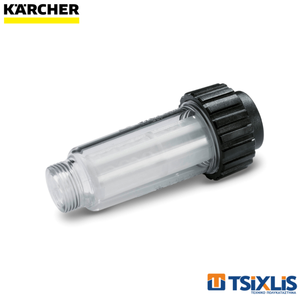 Το φίλτρο νερού προστατεύει τις αντλίες των πλυστικών μηχανημάτων υψηλής πίεσης από τα σωματίδια ρύπων του ακάθαρτου νερού. Το φίλτρο αυξάνει τη διάρκεια ζωής του πλυστικού μηχανήματος υψηλής πίεσης. Κατάλληλη για όλα τα πλυστικά μηχανήματα υψηλής πίεσης οικιακής χρήσης Kärcher των σειρών K2 – K7.