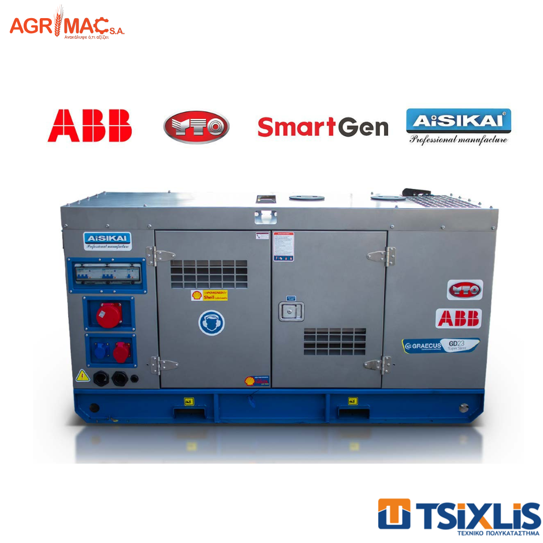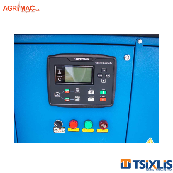 Ηλεκτρογεννήτρια πετρελαίου Graecus βαρέως τύπου με υδρόψυκτο κινητήρα Diesel και εναλλάκτη χωρίς ψήκτρες. Στιβαρό πλαίσιο βάσης από ατσάλι με αντικραδασμικές βάσεις και δεξαμενή πετρελαίου ικανή για λειτουργεία 8-10 ωρών στο 75% της ισχύος. Αμερικάνικη AMF ψηφιακή-αυτόματη μονάδα ελέγχου Smartgen. Ελβετικοί ηλεκτρικοί διακόπτες ABB. Ψυγείο βαρέου τύπου 50 °C. Επαναφορτιζόμενη μπαταρία μολύβδου οξέος. Ειδικά σχεδιασμένο για την ελαχιστοποίηση του θορύβου. Κατασκευή από γαλβανιζέ ατσάλι και επίστρωση ηλεκτροστατικής βαφής για περαιτέρω προστασία. Γαλβανιζέ, ανοξείδωτες, ατσάλινες κλειδαριές και μεντεσέδες. Παράθυρο, στο πορτάκι που κλειδώνει, για τον πίνακα ελέγχου. Το Κουμπί (κόκκινο) είναι για την διακοπή λειτουργείας, έκτακτης ανάγκης στο εξωτερικό περίβλημα. Σημεία ανύψωσης και έλξης στο κύριο πλαίσιο. Γέμισμα ψυγείου με κωνικό (flush-mounted) αδιάβροχο καπάκι, με τσιμούχα συμπίεσης. Έχει αυτόματες λειτουργείες σταμάτα-ξεκίνα, καταγραφής δεδομένων, συναγερμού και τρείς απομακρυσμένες λειτουργείες (ελέγχου, μετρήσεων και επικοινωνίας). Η μονάδα έχει οθόνη LCD και επιλογή διαφόρων γλωσσών όπως Αγγλικά, Τούρκικα, Πολωνικά και Γαλλικά για εύκολη αξιόπιστη χρήση. Με ευρωπαϊκό πιστοποιητικό ασφαλείας CE.