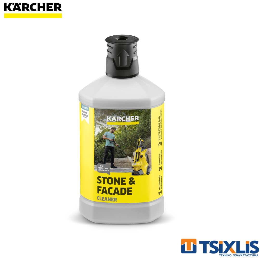 Ιδιαίτερα αποτελεσματική απομάκρυνση ρύπων του δρόμου και βρωμιάς λόγω εκπομπών καθώς και φυκιών και μυκήτων σε πέτρινες επιφάνειες και προσόψεις. Προστασία από τον αέρα και τις καιρικές συνθήκες για τη φροντίδα πέτρινων επιφανειών. Μπορεί επίσης να χρησιμοποιηθεί και σε επιφάνειες από αλουμίνιο.  Γρήγορος και αποτελεσματικός καθαρισμός σε συνδυασμό με μηχάνημα καθαρισμού υψηλής πίεσης της Kärcher. Το σύστημα Plug 'n' Clean είναι ο ευκολότερος και γρηγορότερος τρόπος εφαρμογής χημικού προϊόντος καθαρισμού με τη χρήση πλυστικού μηχανήματος υψηλής πίεσης της Kärcher. Έτοιμο προς χρήση απορρυπαντικό (RTU). Προσαρμοσμένο στις συσκευές Kärcher με εγγυημένη συμβατότητα υλικών