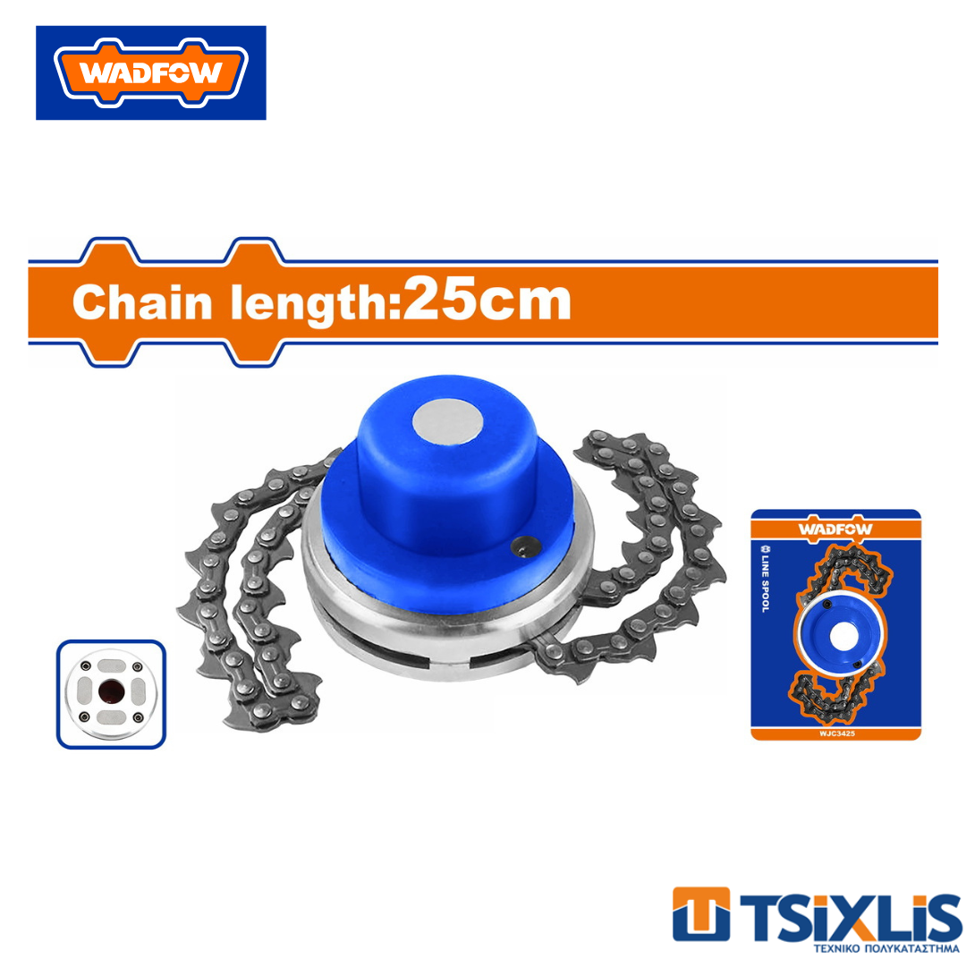 Κεφαλή μεσινέζας με αλυσίδα 25cm από την Wadfow. Το πλέον απαραίτητο εξάρτημα για όλα τα θαμνοκοπτικά. Κατάλληλο για τις γεωργικές σας εργασίες.
