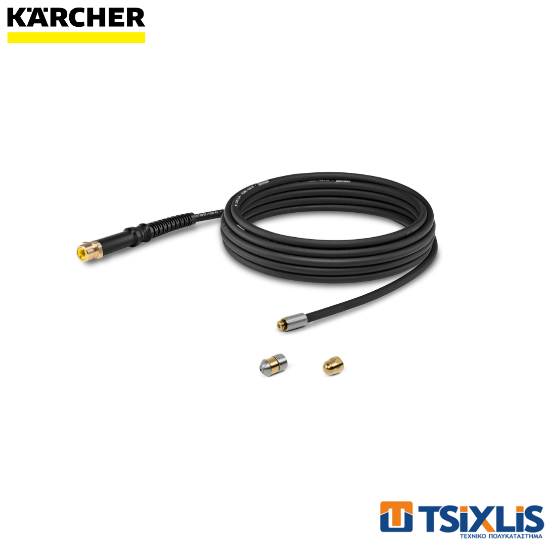 Το πρακτικό και ευέλικτο σετ καθαρισμού σωλήνων για τον καθαρισμό αγωγών, αποχετεύσεων και υδρορροών και για την αποτελεσματική απομάκρυνση των φραγμών. Το σετ περιλαμβάνει δύο διαφορετικά ακροφύσια, τα οποία μπορούν να αντικατασταθούν γρήγορα χάρη στη βιδωτή σύνδεση. Το ακροφύσιο jet έχει ισχυρή ώθηση προς τα εμπρός με τις τέσσερις οπές υψηλής πίεσης που είναι στραμμένες προς τα πίσω – ιδανικό για υδρορροές και για την απομάκρυνση φραγμών από στερεά υλικά. Το περιστρεφόμενο ακροφύσιο χρησιμοποιείται για προληπτικό καθαρισμό και συντήρηση. Το σύστημα καθαρισμού 360° απομακρύνει αποτελεσματικά τις αποθέσεις από το εσωτερικό των τοιχωμάτων του αγωγού. Έτσι αποτρέπεται η δημιουργία φραγμών. Το σχήμα των ακροφυσίων είναι βελτιστοποιημένο, ώστε να μην υπάρχουν προεξοχές στο σημείο σύνδεσης με τον εύκαμπτο σωλήνα υψηλής πίεσης. Έτσι ελαχιστοποιείται ο κίνδυνος να σφηνώσει το ακροφύσιο στον αγωγό. Ο εύκαμπτος σωλήνας υψηλής ποιότητας μήκους 7,5 μέτρων είναι ενισχυμένος με πλεκτό ύφασμα – για εύκολο χειρισμό σε σωληνώσεις με γωνίες. Ο σωλήνας διαθέτει προστασία από συστροφές και ορειχάλκινες συνδέσεις για μεγάλη διάρκεια ζωής. Κατάλληλο για χρήση τόσο στο σπίτι όσο και σε εξωτερικούς χώρους σε συνδυασμό με όλα τα πλυστικά μηχανήματα υψηλής πίεσης Kärcher των κατηγοριών K 2 έως K 7.
