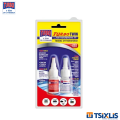 Fast-setting adhesive and adhesive filler in one package. Easy to use, stable and reliable result. For car repairs, hobbies, crafts and industry. Adhesive suitable for all material combinations (except PP, PE) and fast-setting mineral that strengthens connections and fills cracks, gaps and holes.