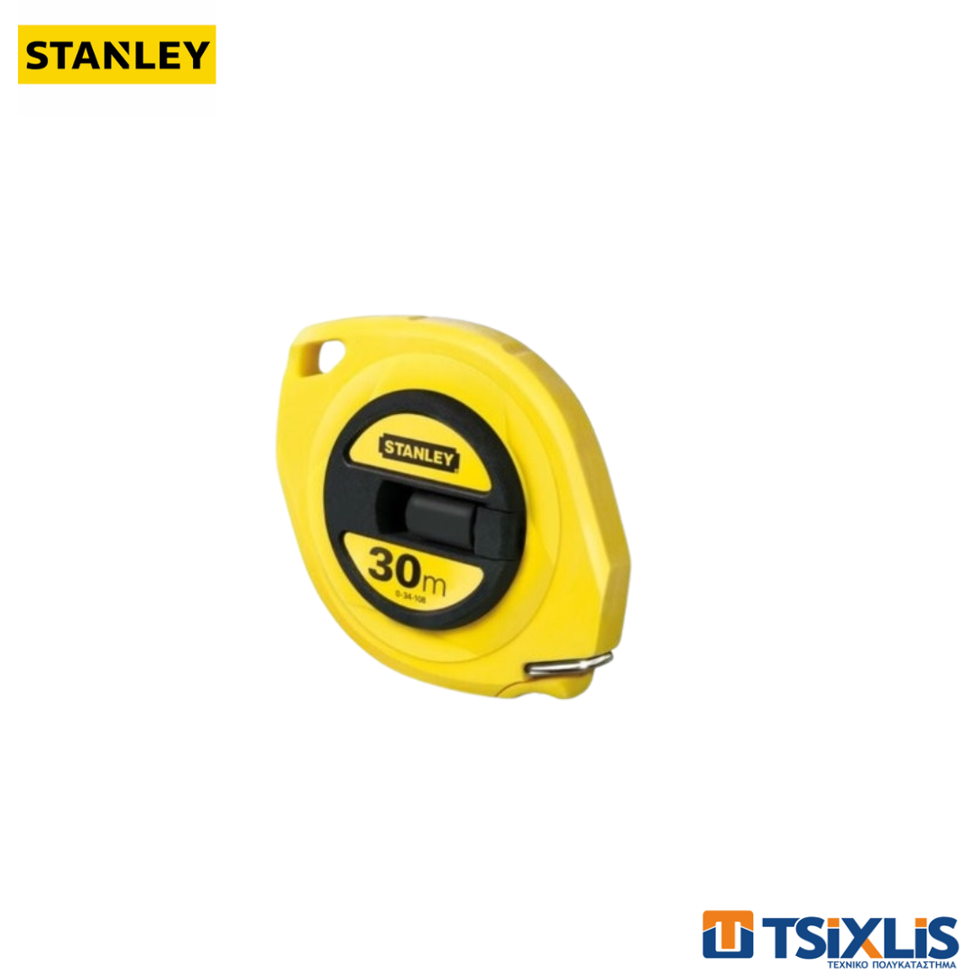 Μετροταινία μεταλλική 30m Stanley. Ατσάλινη ταινία με επίστρωση από πολυμερές, ανθεκτική στην τριβή. Διαβάθμιση ανά 2mm. Με αρθρωτή μανιβέλα για γρήγορο τύλιγμα της ταινίας. Κλειστό κέλυφος από ABS ανθεκτικό σε κρούσεις, με εργονομικό συμπαγή σχεδιασμό.