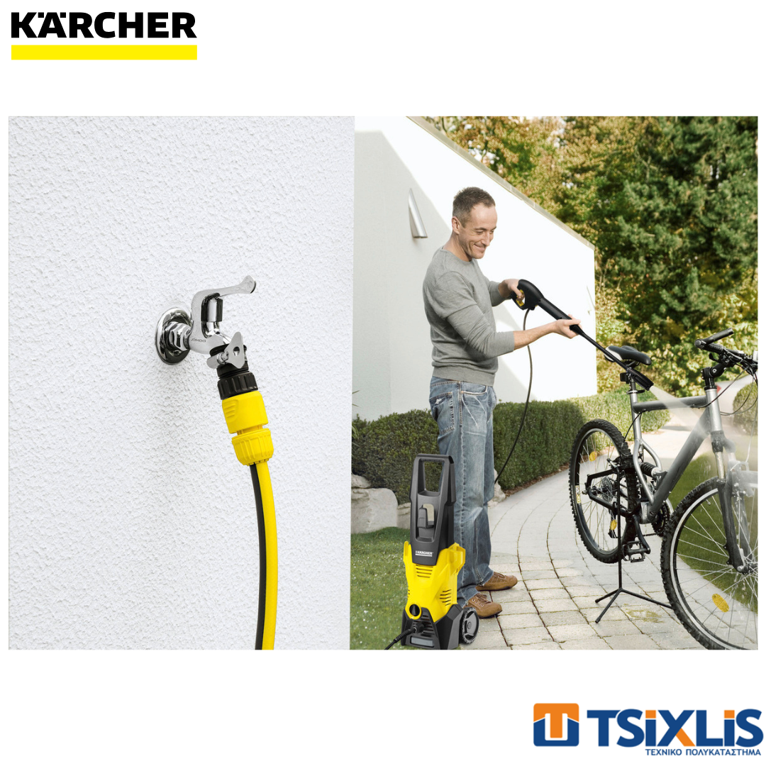 Πείτε αντίο στους κοινούς ρύπους με το Kärcher "Κ3". Το μηχάνημα υψηλής πίεσης με πιστόλι Quick Connect και λάστιχο υψηλής πίεσης 6m είναι κατάλληλο για οικιακή χρήση και καθαρισμό κοινών ρύπων, π.χ. τον καθαρισμό αυτοκινήτου, ποδηλάτου, μηχανής. Αλλά και για το εξωτερικό του σπιτιού σε έπιπλα κήπου, μπαλκονόπορτες και μπαλκόνια, αυλές και πλακόστρωτα. Η πίεση του νερού μπορεί να ρυθμιστεί με την κάνη ρύθμισης πίεσης (VPS). Το turbo μπεκ είναι ιδανικό για την αφαίρεση επίμονων ρύπων. Η αντλία του Κ3 είναι κατασκευασμένη από το καινοτόμο υλικό πολυαμίδης και υαλονημάτων, για συνδυασμό εντυπωσιακά μικρού βάρους και μοναδικής αντοχής. Επιπλέον, η αντλία προστατεύεται από ένα φίλτρο νερού - για μεγαλύτερη διάρκεια ζωής.