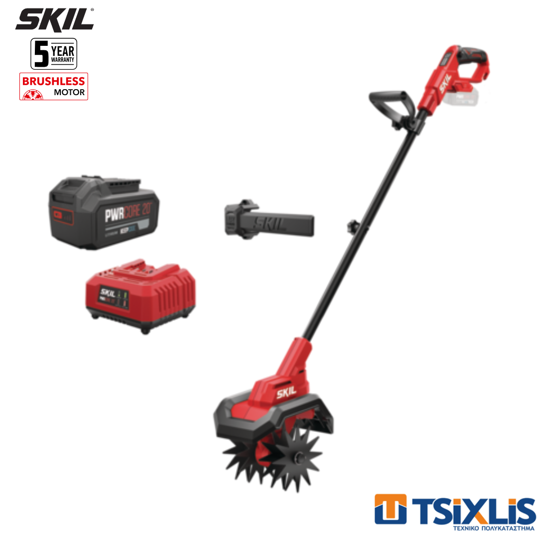 Σκαπτικό μπαταρίας 20v από την Skil, με κινητήρα χωρίς ψήκτρες με αποτέλεσμα να είναι γρηγορότερος, ισχυρότερος και με 10 φορές μεγαλύτερη διάρκεια ζωής. Σχεδιασμένο για γρήγορη και εύκολη απομάκρυνση χώματος. Με 3 λειτουργίες επιλογής ταχύτητας/ισχύος, που προσφέρουν μέγιστη ισχύ για πιο απαιτητικές εργασίες ή μεγαλύτερη διάρκεια μπαταρίας για πιο ελαφριές εργασίες. Ιδανικό για προετοιμασία και συντήρηση του εδάφους σε παρτέρια, λαχανόκηπους και άλλες καλλιεργούμενες περιοχές. Αποτρέπει τη διασπορά χώματος προς τον χρήστη. Γρήγορη, χωρίς εργαλεία αλλαγή των 4 ανθεκτικών ατσάλινων δοντιών για εύκολη αντικατάσταση.