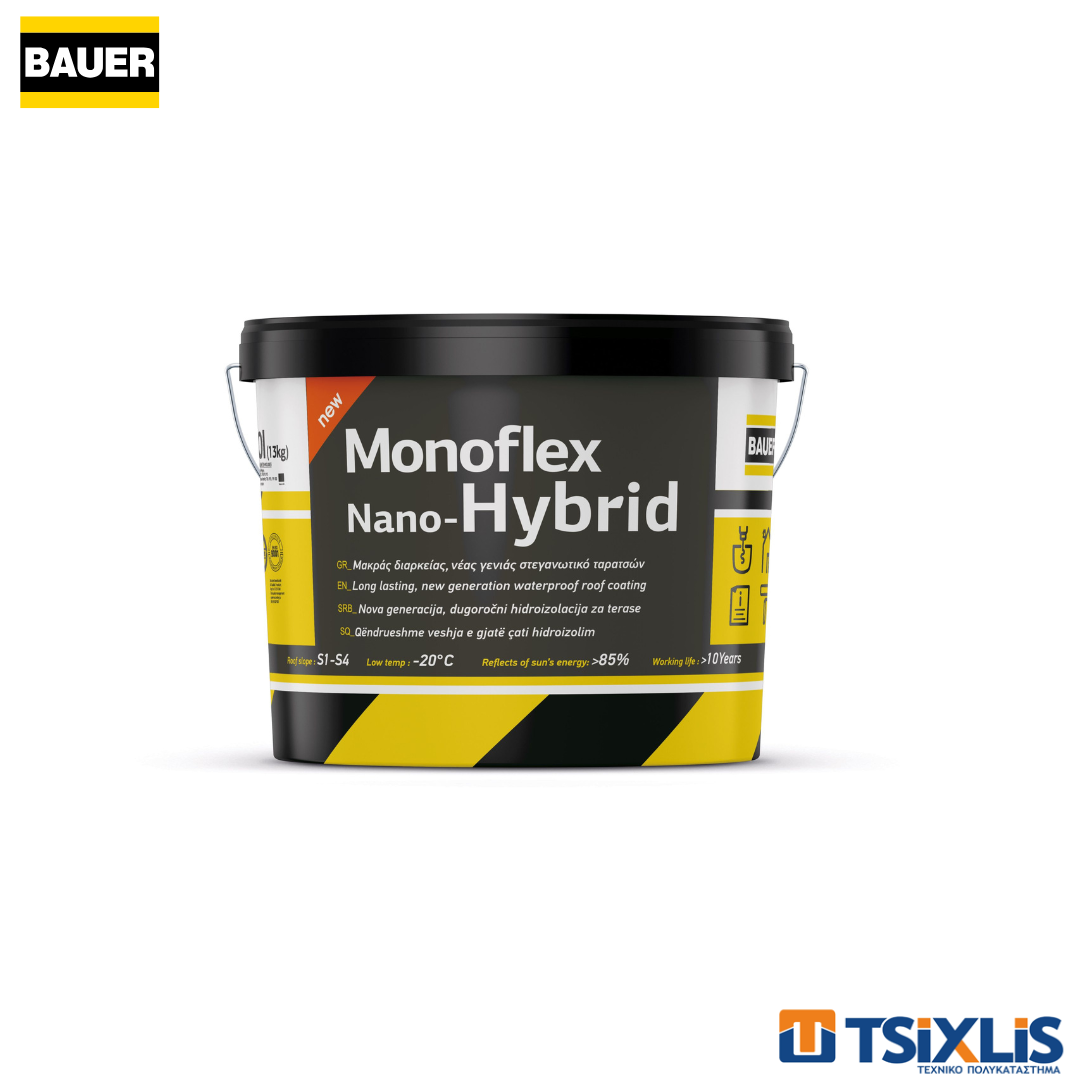 Υβριδικό ελαστομερές στεγανωτικό ταρατσών από νανο-τροποποιημένες ρητίνες νέας γενιάς. Σχηματίζει μια προστατευτική μεμβράνη χωρίς αρμούς και ενώσεις που είναι πολύ ελαστική, απολύτως στεγανή με μεγάλη αντοχή στα λιμνάζοντα νερά, χωρίς πολυουρεθάνες, διαλύτες και άλλες επικίνδυνες και τοξικές ουσίες. Έχει εξαιρετική πρόσφυση σε οποιαδήποτε επιφάνεια, όπως σκυρόδεμα, τσιμεντοκονίες, γαρμπιλομπετόν, ξύλο, μέταλλο και σε κάθε είδους στεγανοποιητικές στρώσεις. Εξαιρετική αντίσταση σε ακραίες καιρικές συνθήκες (-10 oC έως +90 oC). Η επιφάνεια δεν κολλάει (tack free) στο βάδισμα μετά την εφαρμογή ακόμα και σε μεγάλες θερμοκρασίες με αποτέλεσμα να μην συγκεντρώνει ρύπους. Εφαρμόζεται σε 2 στρώσεις με ρολό σε καθαρό υπόστρωμα. Αραιώνεται με νερό μέχρι 5-10% για μία στρώση σαν αστάρι.