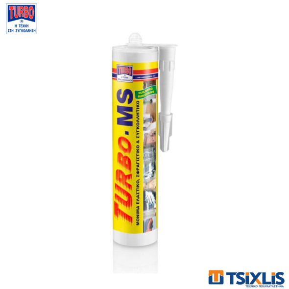 Το TURBO – MS είναι κατάλληλο για μόνιμα ελαστικές στεγανοποιήσεις και συγκολλήσεις σε βιομηχανικές εφαρμογές, βιομηχανίες σιδήρου, χάλυβα, μετάλλων, αλουμινίου, ξύλου, αυτοκινητοβιομηχανία, ηλεκτρολογικές εγκαταστάσεις, laminate, σοβατεπί, φελλό, πλαστικά, σκυρόδεμα, πέτρα, γύψο, κεραμικά, καθρέπτες, διακοσμητικά πάνελ, θερμομονωτικές και ηχομονωτικές πλάκες, επενδύσεις τοίχων, μάρμαρα, μονωτικά υλικά, πολυστερίνες, πλακάκια, φυσικές πέτρες, παράθυρα, περβάζια, είδη υγιεινής, αξεσουάρ μπάνιου, μηχανές εξαερισμού και κλιματισμού, βαγόνια, κοντέινερ κ.άλ.